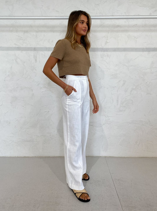 The Oliver Pant in Ivory from Bec + Bridge are the classic tailored piece to add to your coco closet!