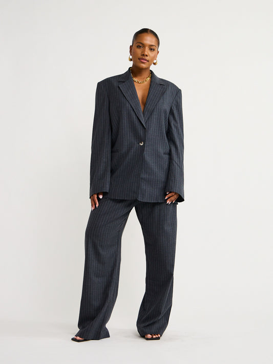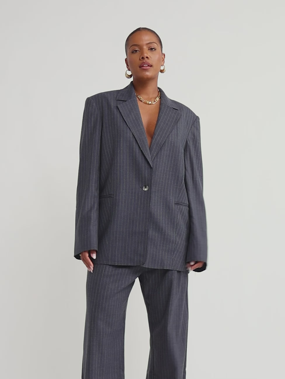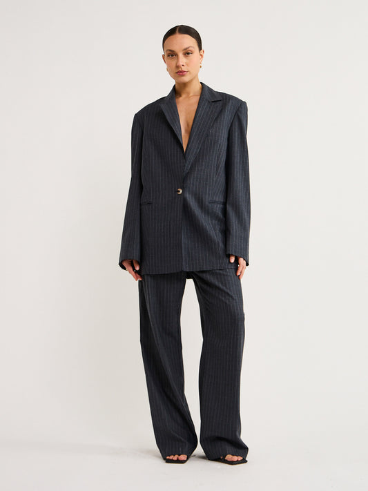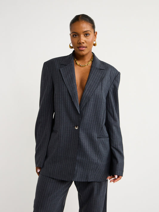 Bec and Bridge Pine Blazer in Charcoal Pinstripe
