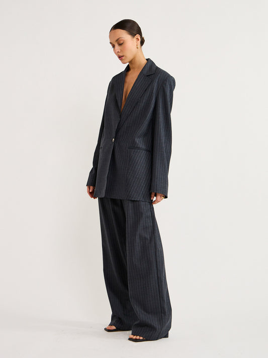 Discover the style of modern elegance with the Bec + Bridge  Pine Blazer in Charcoal Pinstripe.