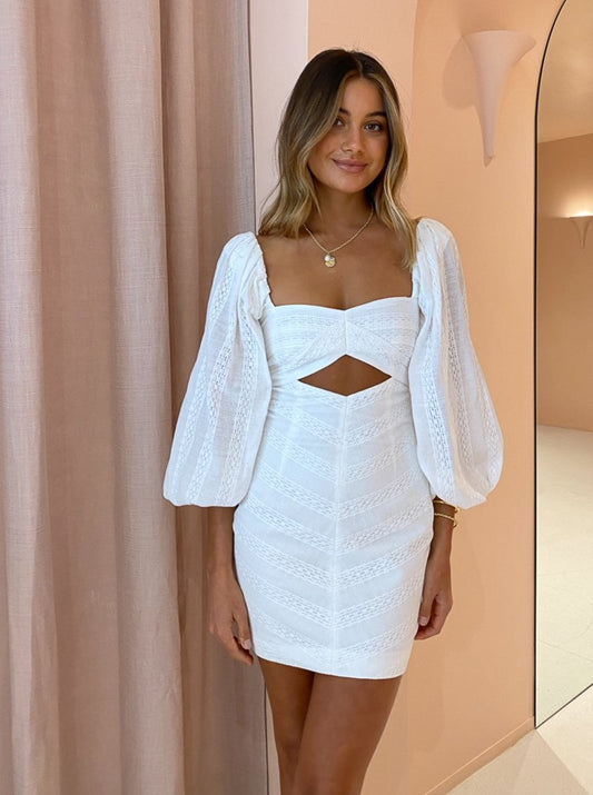 Designed in a textured cotton, with a balloon sleeve feature and sweetheart neckline, this is the perfect piece for all your daytime and night time events.