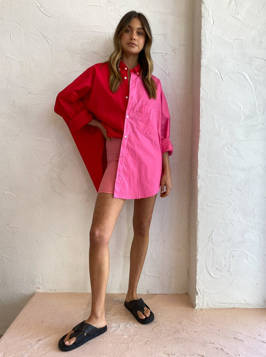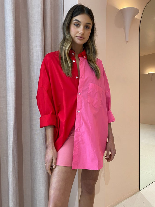 Colour Co-ordinate with Blanca Henrietta Shirt in Pink Red and slip on some Alias Mae Soleis Sandal in Black.