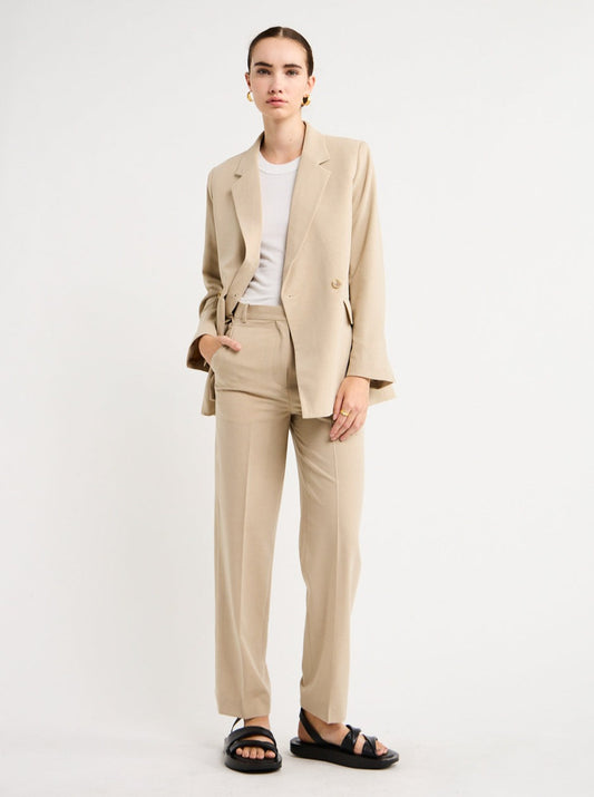 Perfect for an off-duty look or desk to dusk occasion, this double-breasted piece pairs perfectly with the Lawrence Pants in Beige for effortless elegance.
