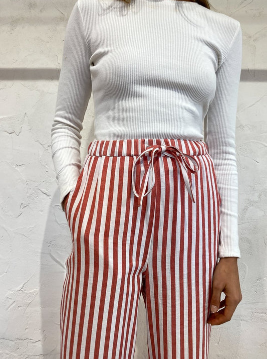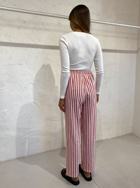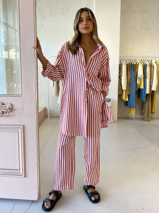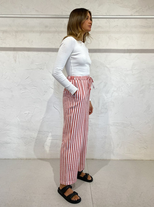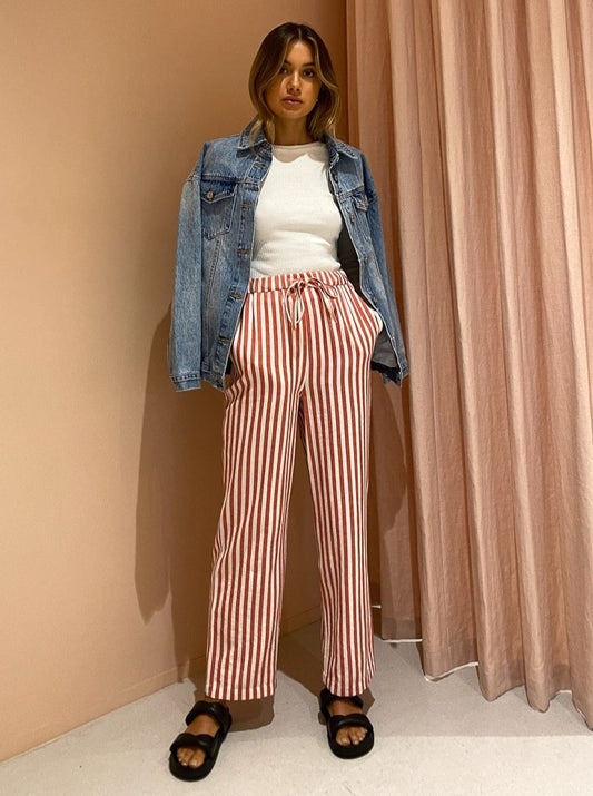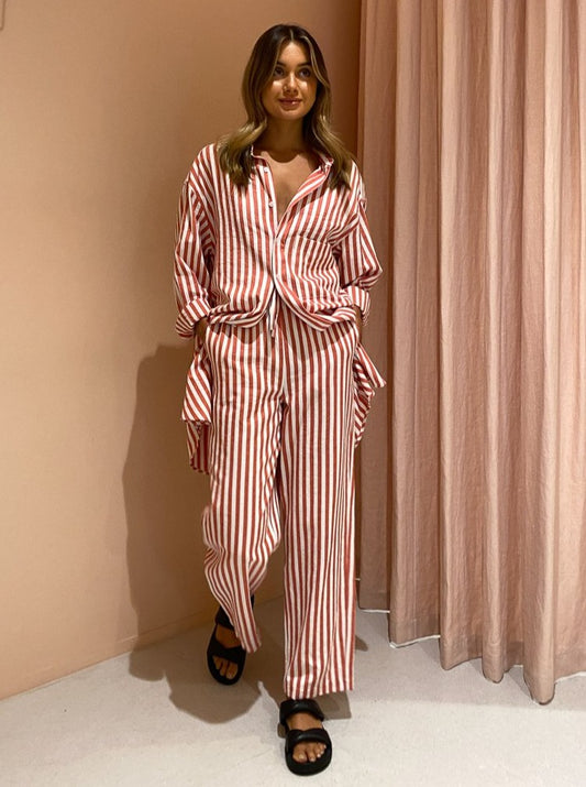 Designed for ultimate comfort, the Ringo Pants are a high waisted, straight style cut from a breathable thick cotton in a delicious red candy stripe print. With an adjustable waist, you can style these pants as you please to sit high on the waist or low on the hips for an oversized cut.