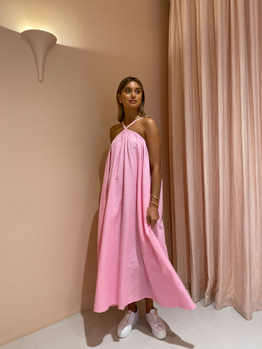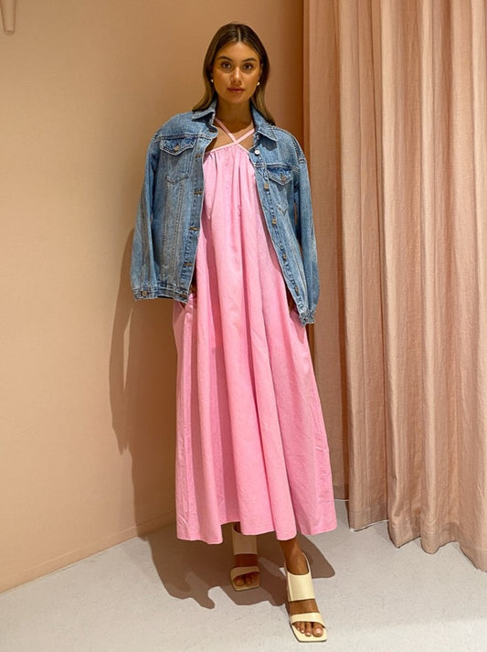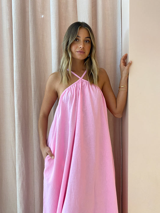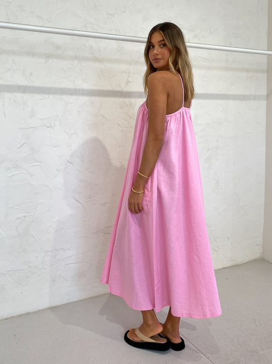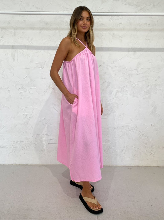 Crafted in a 100% candy pink cotton, this floaty and dreamy maxi is a one sized and features internal side pockets for an extra touch.