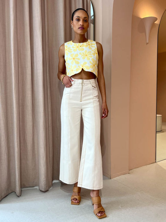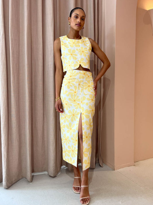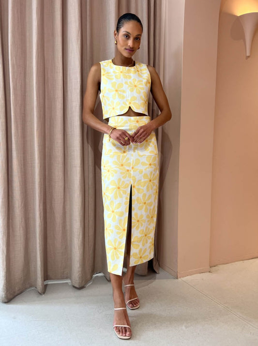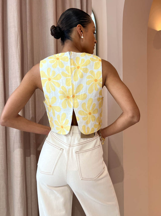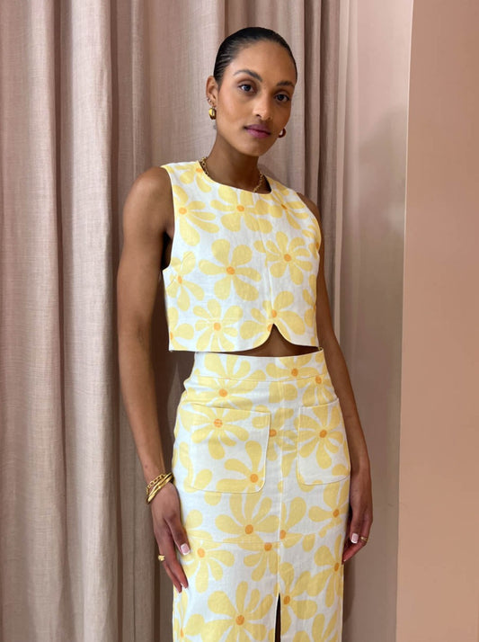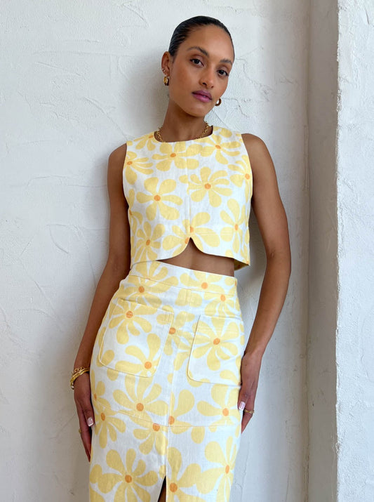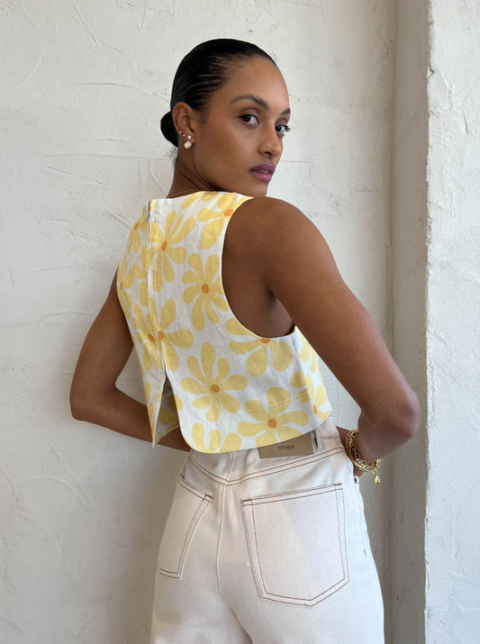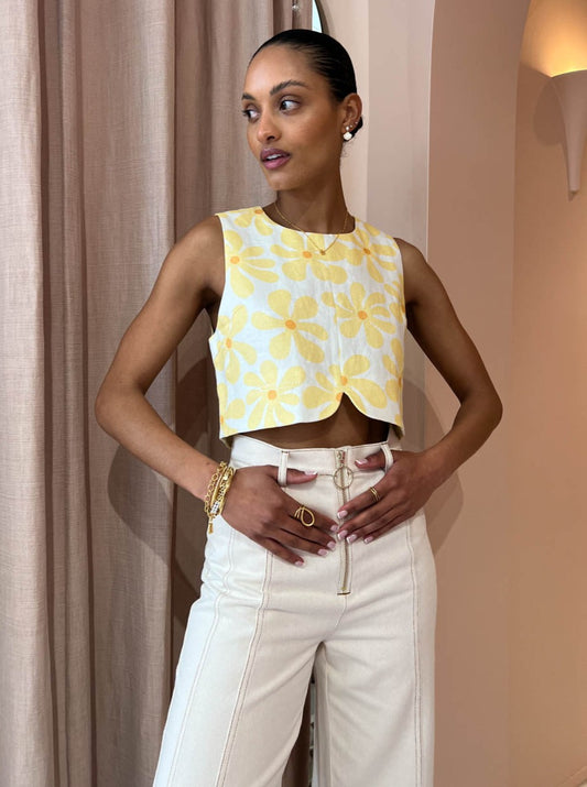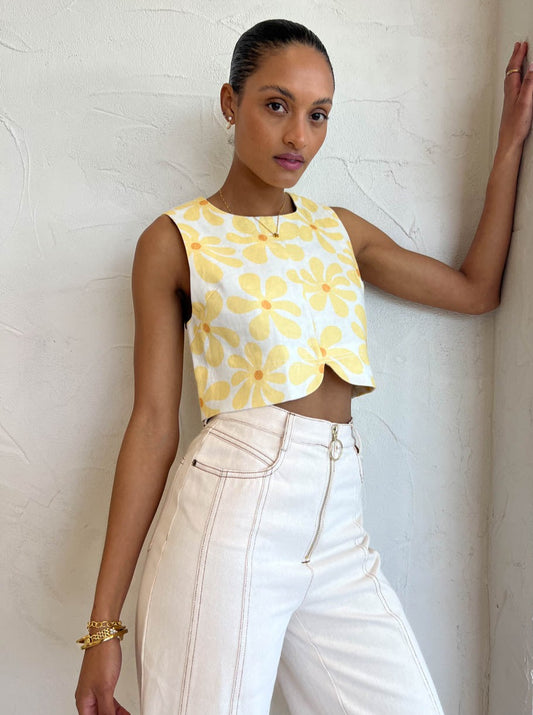 Indulge in hues of sunshine with the Callie Sun Crop in Sun Floral from By Johnny.