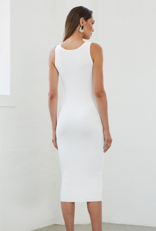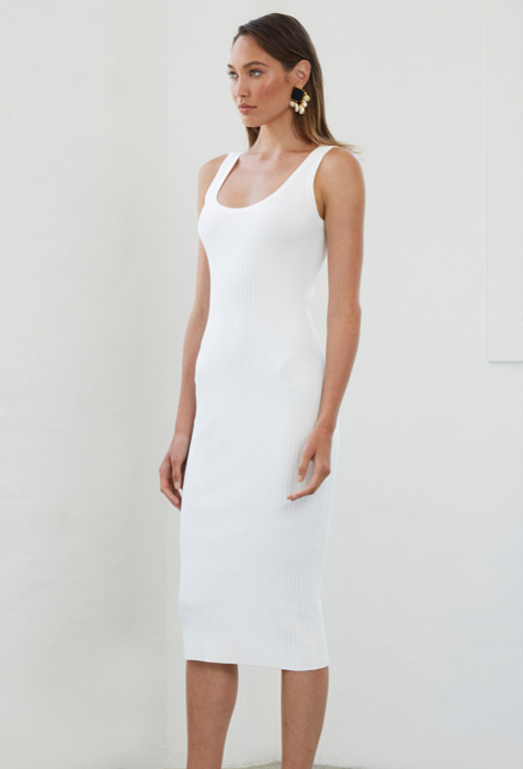 Simple, elegant and form-fitting, the Double Rib Scoop midi dress is the perfect staple knit for every wardrobe. Characterised by its sleek and elegant silhouette, this chic midi is made from a flattering double ribbed knit fabric, allow it to sit frimly on the body. This Australian designed knit can be styled for any day or evening event. Cutting round and high in the neck, this women's dress is midi length finishing just below the knee.