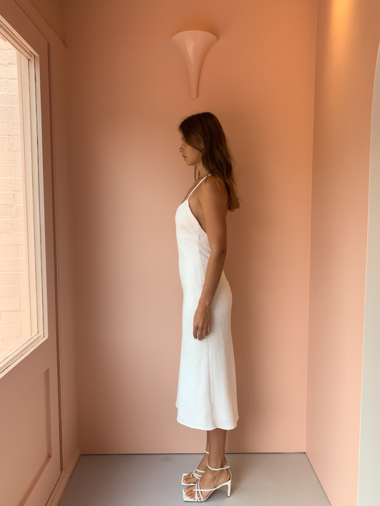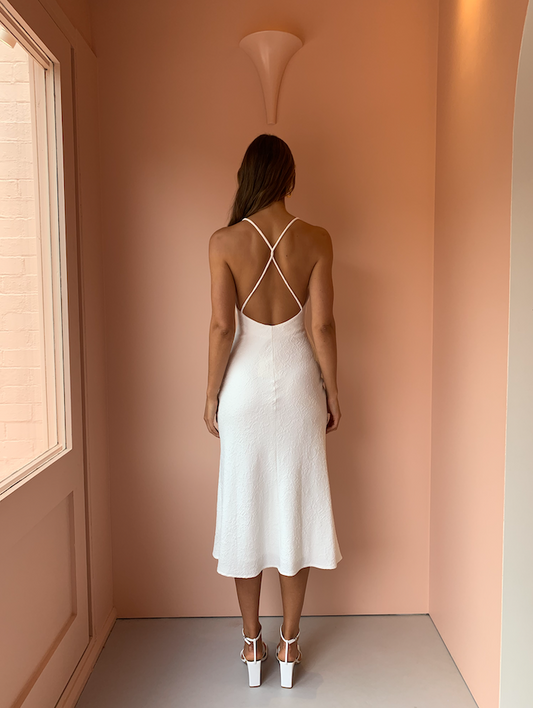 By Johnny Mia Cross Back Bias Midi Dress in White