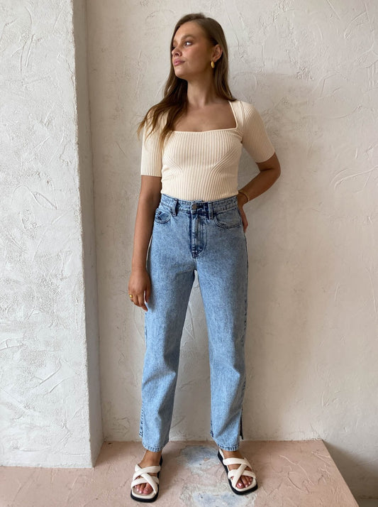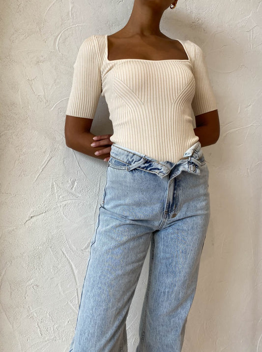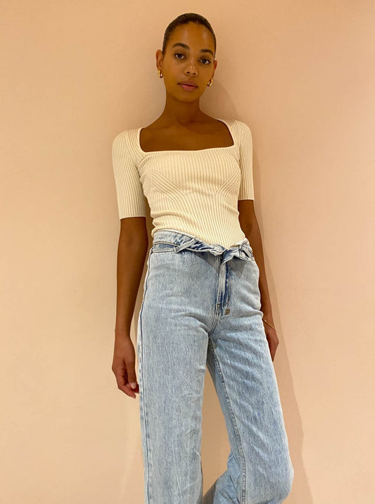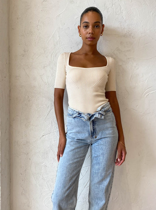 By Johnny are heightening your wardrobe staples with sleek sophistication in the Panelled Rib Knit Top in Creme.