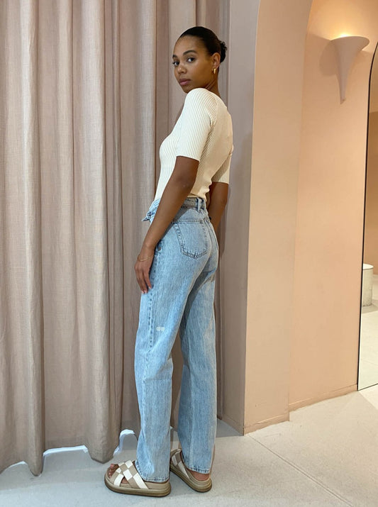 For desk to dinner dates and your weekend wanderings, style the Paneled Top with Viktoria & Woods Cobain Jean in Acid Wash, the Camilla and Marc Twister Flat Sandal in Black and Porter Tube Bangle 3mm in Gold