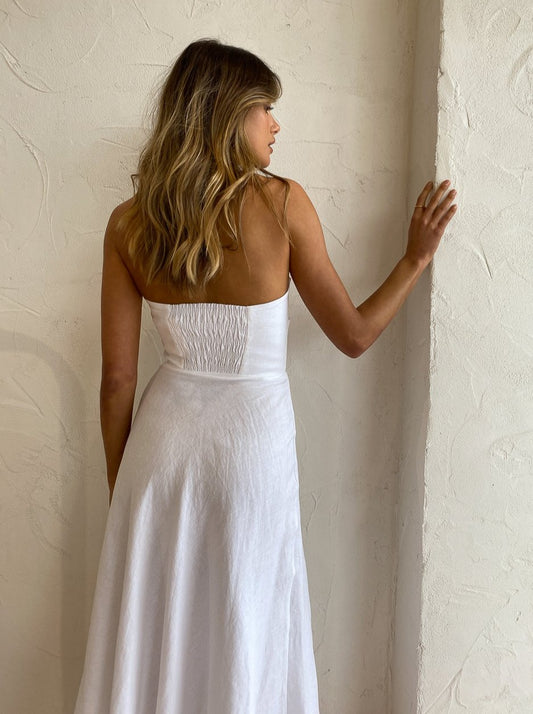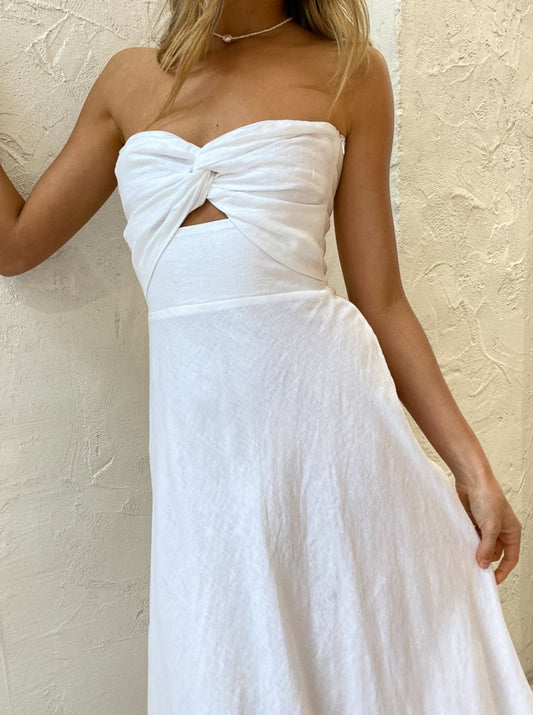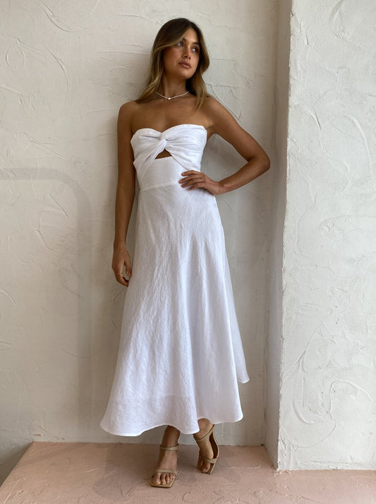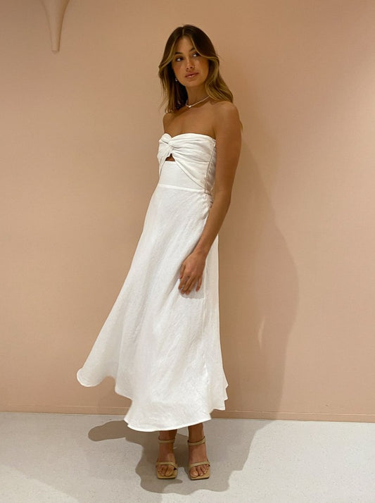 The Penelope Strapless Midi Dress in White from By Johnny is an elevated silhouette that will quench your thirst for Summer.