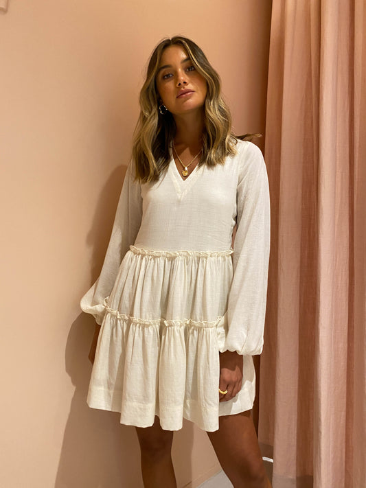 The Capri Long Sleeve Mini Dress in Natural Cream from By Nicola has been designed with the Coco girl in mind.