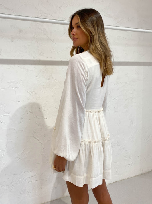 Featuring a relaxed babydoll silhouette and a soft billowing sleeve with an elastic cuff. We adore the easy to wear mini dress for long lunches, weekend getaways and birthday celebrations.