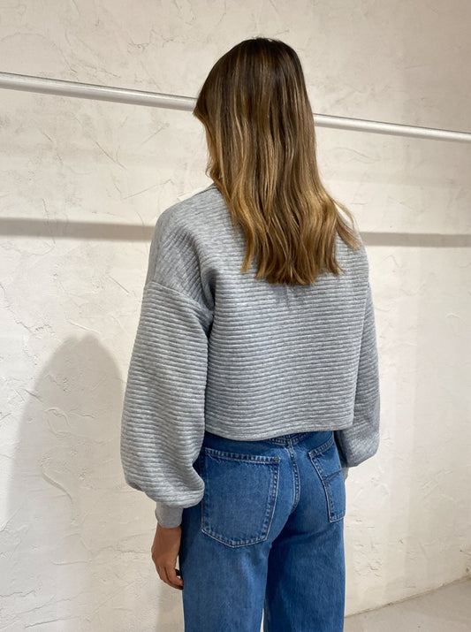 Designed with the Coco girl in mind, the Charlotte is an oversize crop that embraces femininity and collegiate fashion through it's structured collar, v-neckline, and statement billowed sleeves.