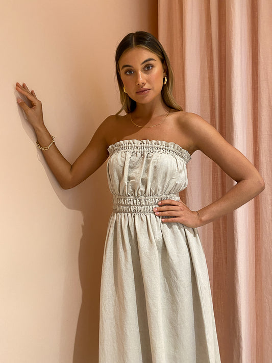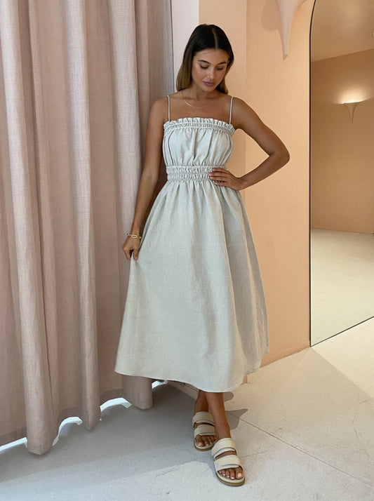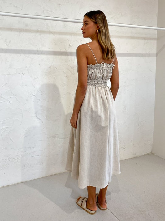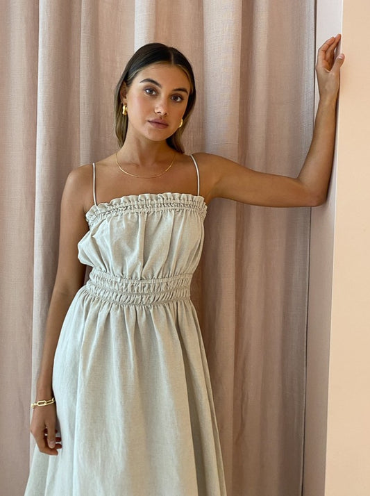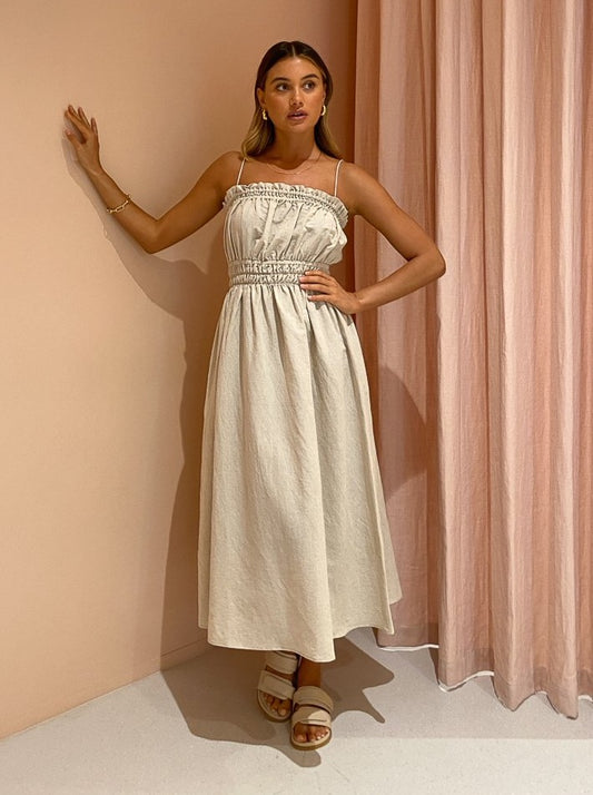 The exclusive By Nicola Flamenco Midi Dress in Natural is the every bit dreamy and sweet for the those sun kissed days.