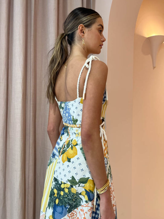 Quench your thirst for Summer soirées with the irresistible Exclusive By Nicola Lemonade Tie Maxi Dress in Lemon Patchwork.