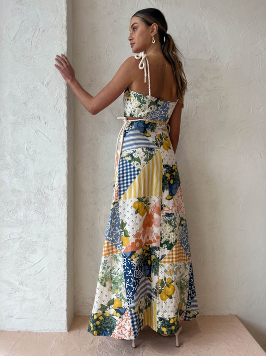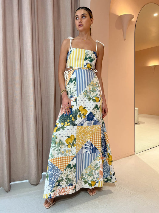 By Nicola Lemonade Maxi Dress in Lemon Patchwork