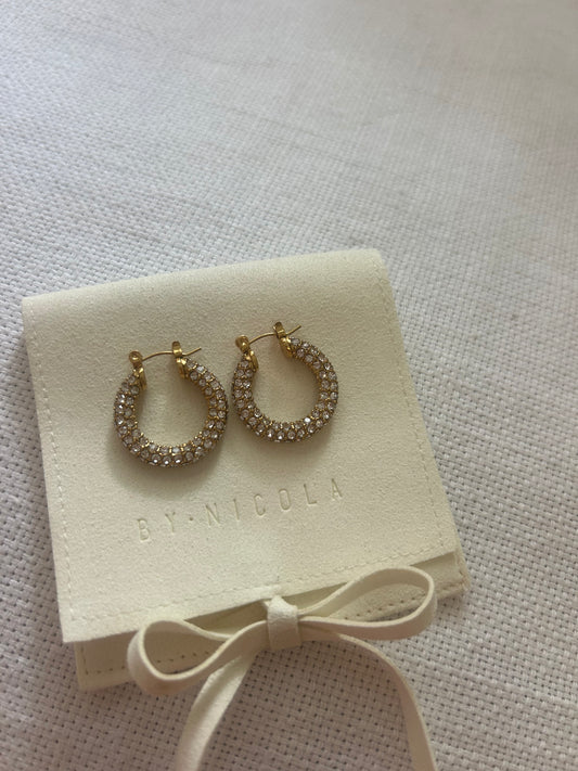 The Matilda large hoops from By Nicola are made from stainless steel and 18k gold plated. Waterproof, tarnish resistant and come packaged in a small gift pouch.