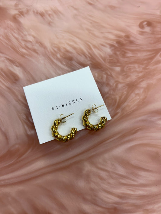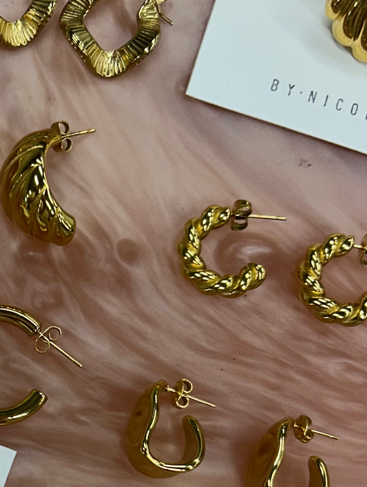 The Taylor Earrings from By Nicola are made from stainless steel and 18k gold plated. Waterproof, tarnish resistant and come packaged in a small gift pouch.