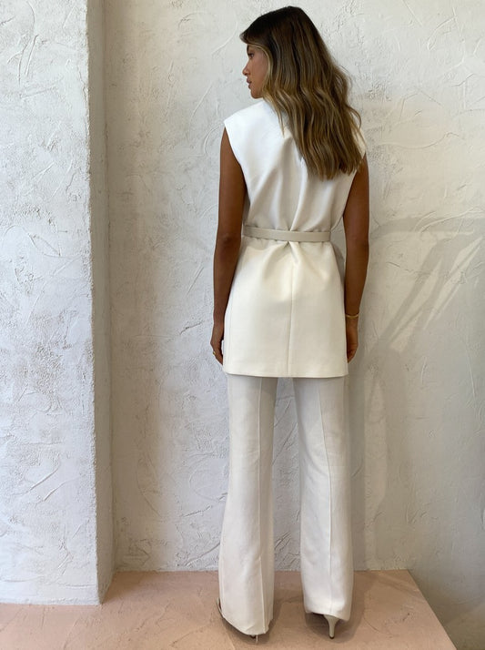 For the cooler nights pop on the Camilla and Marc Alina Wide Leg Pant in Cream to style the Vest as a top.