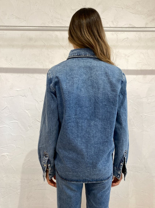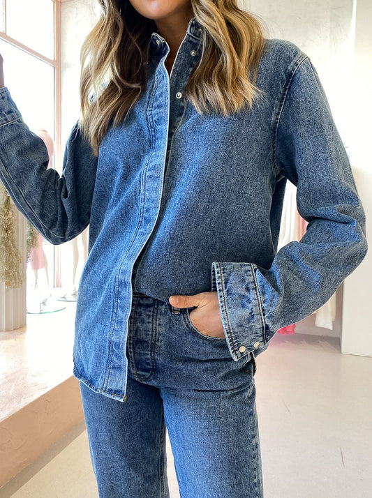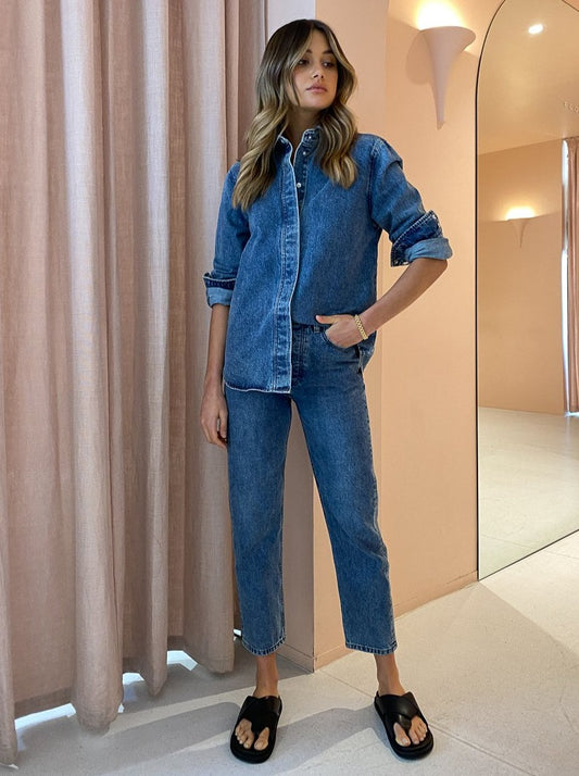 Alternate your everyday denim jacket with the Helena Shirt in Medium Worn from Camilla and Marc.
