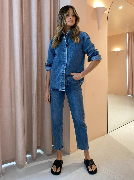 Coco Styling Tip: Complete your denim set styling with the Camilla and Marc Betty Jean in Medium Worn, the Alias Mae Soho Sandals in Black and finish with the Porter Bubble Ring in Gold