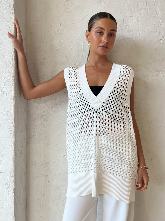 Complete this look with the CAMILLA AND MARC Luna Mesh Knit Vest in WhiteCAMILLA AND MARC Adrien Bandeau Top in BlackAlias Mae Poe Slide in TanPorter Pond Earrings in BlackPorter Pond Ring in GoldPorter Pond Bangle in GoldPorter Wave Ring Set in Gold and the Porter Chunky Belcher Bracelet in Gold.
