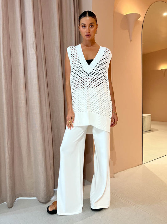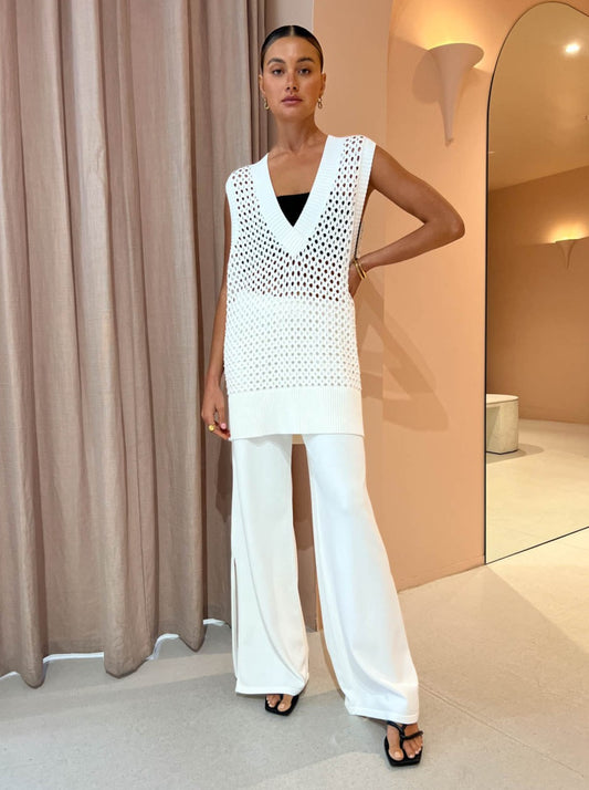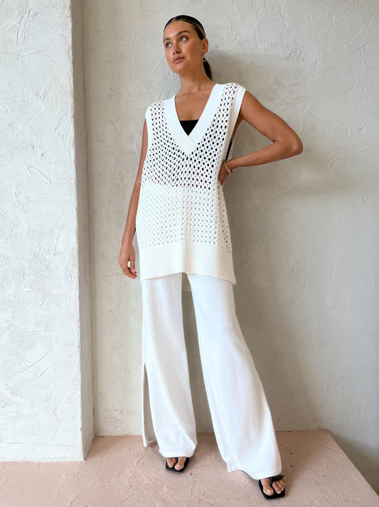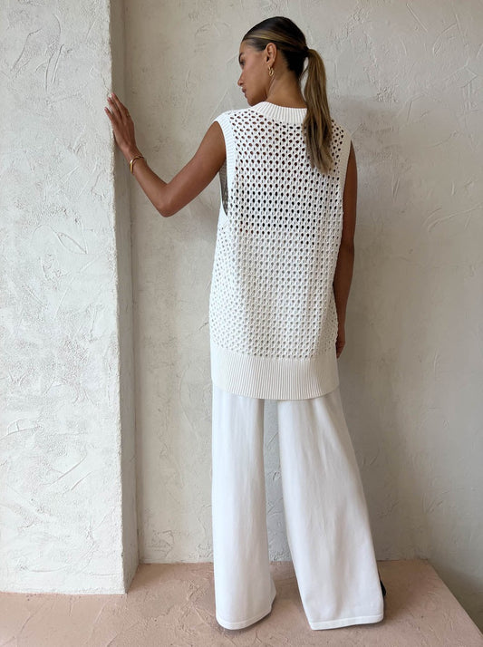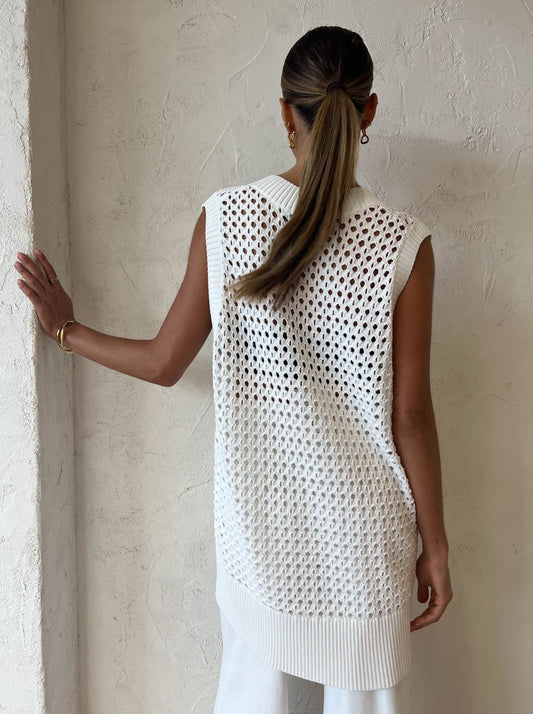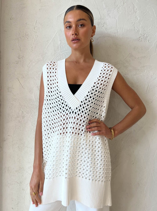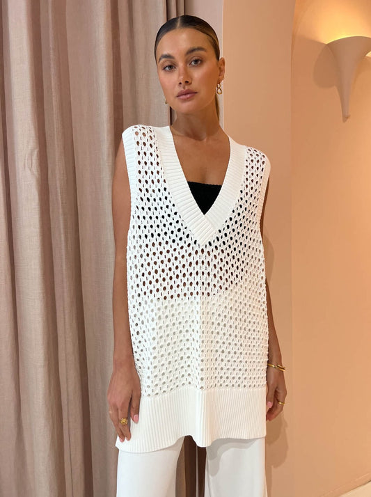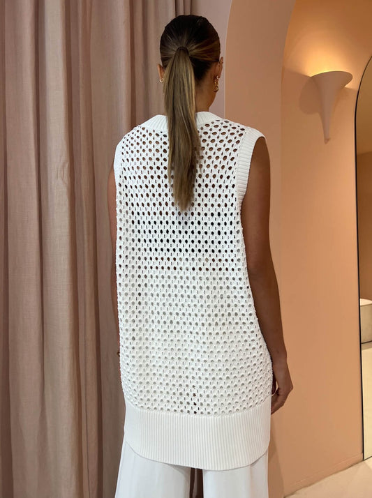 Elevate your summer layering essentials with the CAMILLA AND MARC Luna Mesh Knit Vest in White.