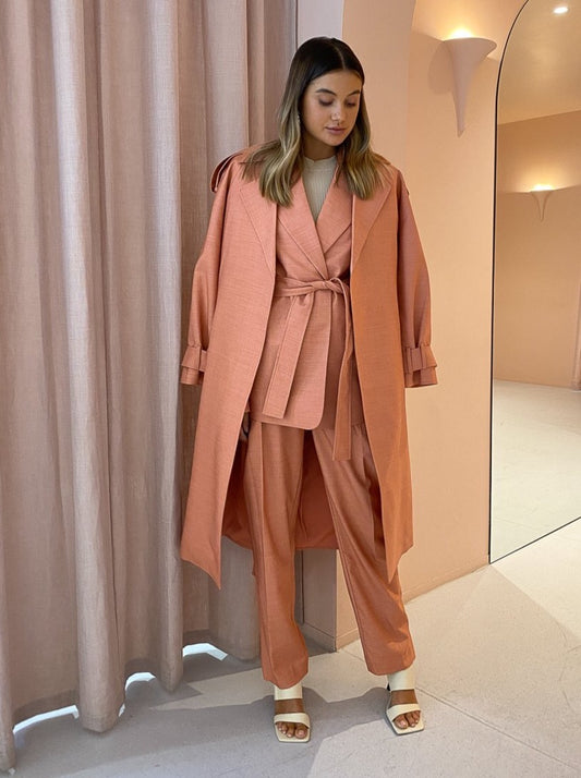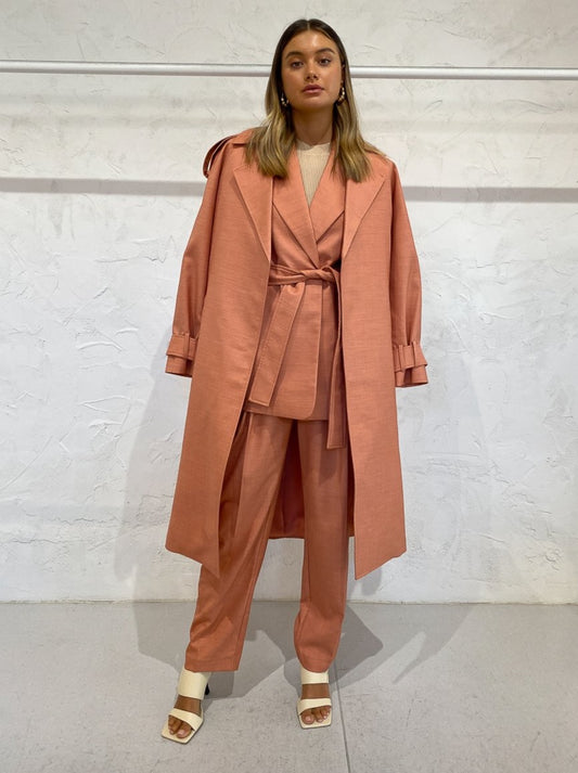 The Marley Trench Coat in Warm Guava from Camilla and Marc heroes contemporary lines and craftsmanship, reimagined in a tantalisingly sunset inspired hue.
