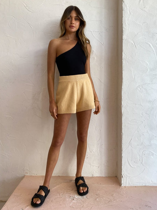 Coco girls are incorporating these warm Custard hue shorts into their trans-seasonal off-duty repertoire and weekend getaways.