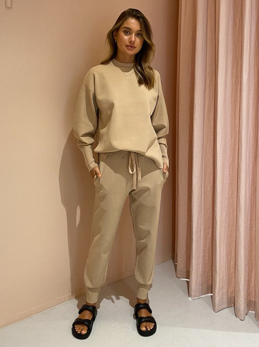 The Sidney Tapered Knit Pant in Suede by Camilla and Marc have us loving elevated leisurewear in a chic neutral hue.