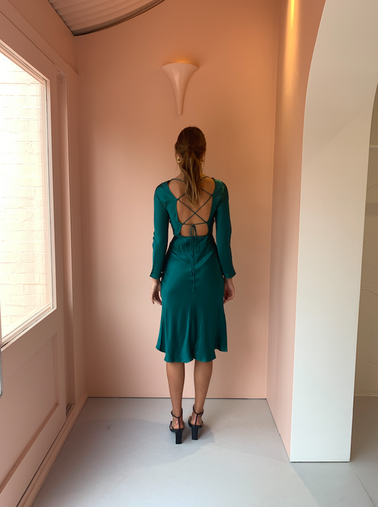 Make a statement at your next cocktail or formal event in the Carver Anabele midi dress in Emerald.