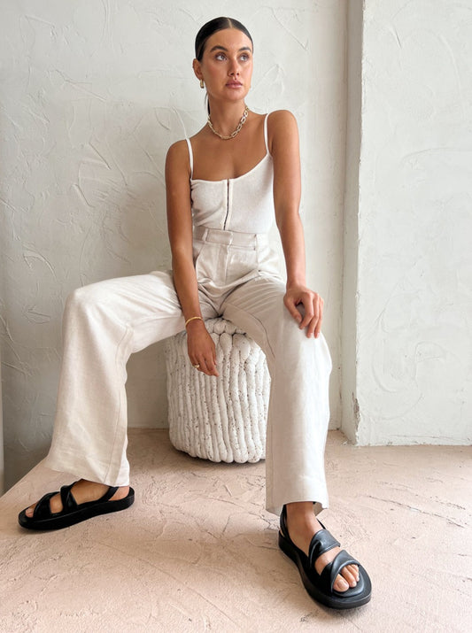 Invest in your work-to-weekend wardrobe with the everlasting Martina Pant in Natural from Elka Collective.