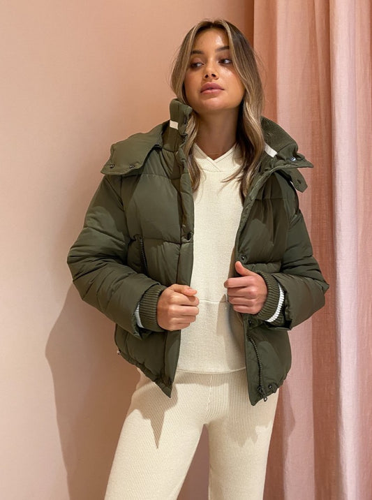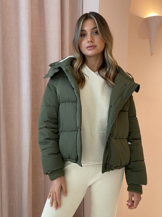 The Cropped Puffer Jacket in Khaki from Ena Pelly is a Coco staple for your transeasonal wardrobe!