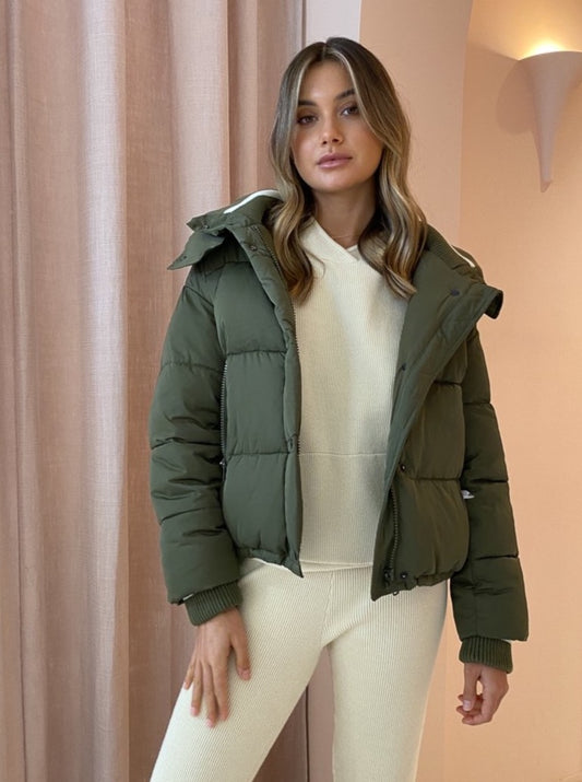 Coco Styling Tip: Complete this look with the Ena Pelly Cropped Puffer Jacket in Khaki and the Reliquia Baby Coralia Earrings in Gold.