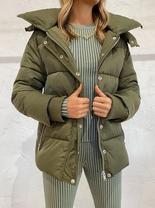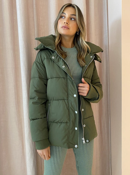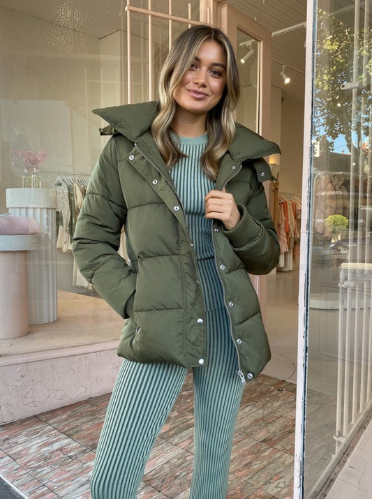 No Coco is complete without the Utility Puffer Jacket in Khaki from Ena Pelly.