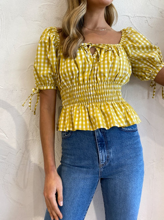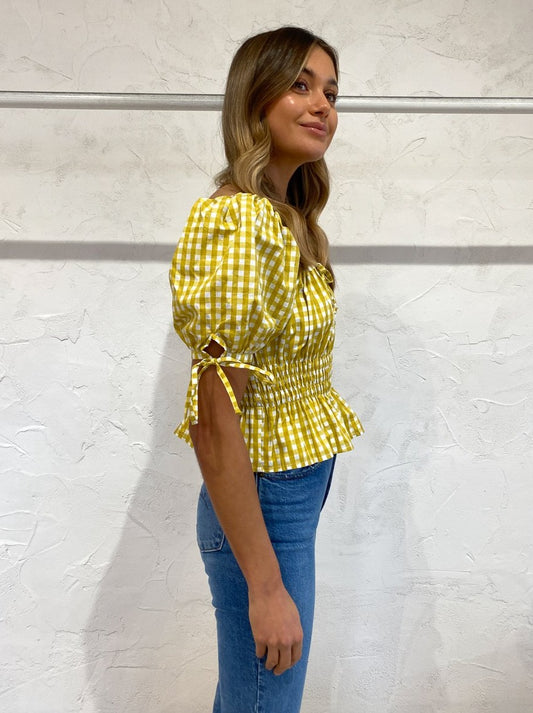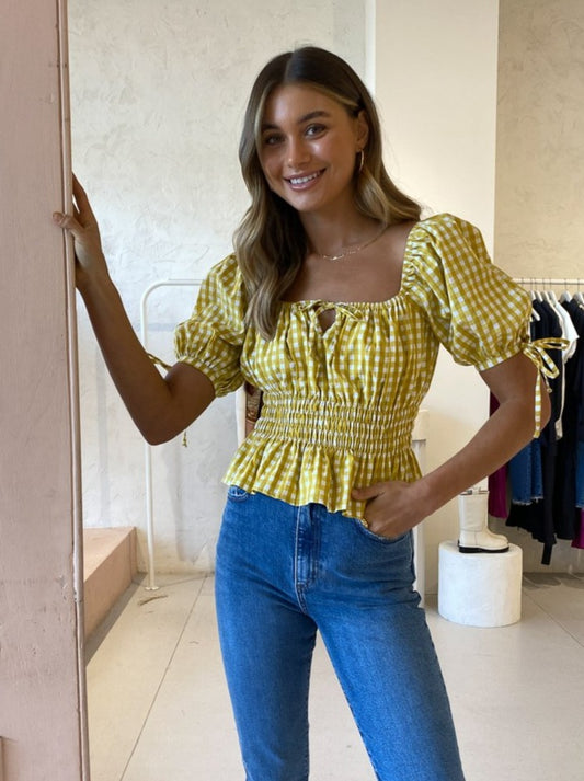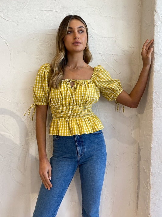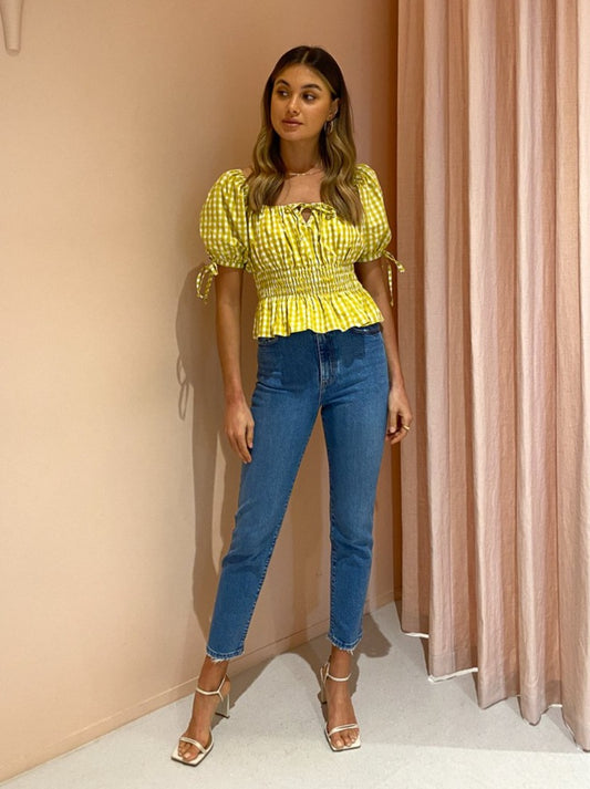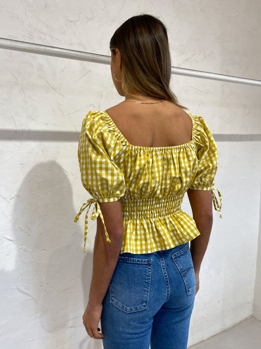 The Edna Top in Mari Check Print from Faithfull the Brand is the prairie styled blouse of our Coco dreams.