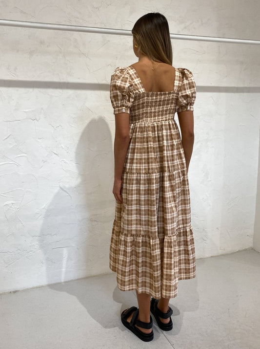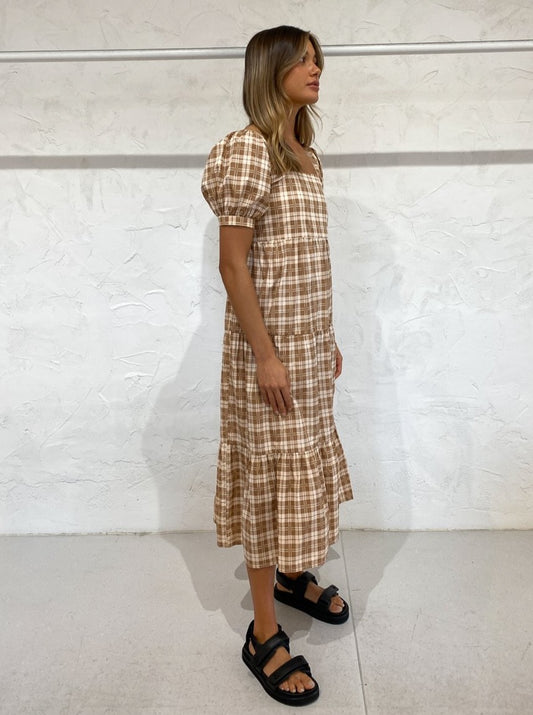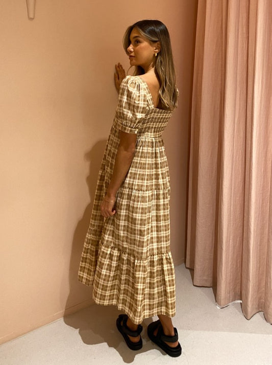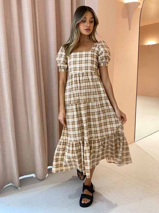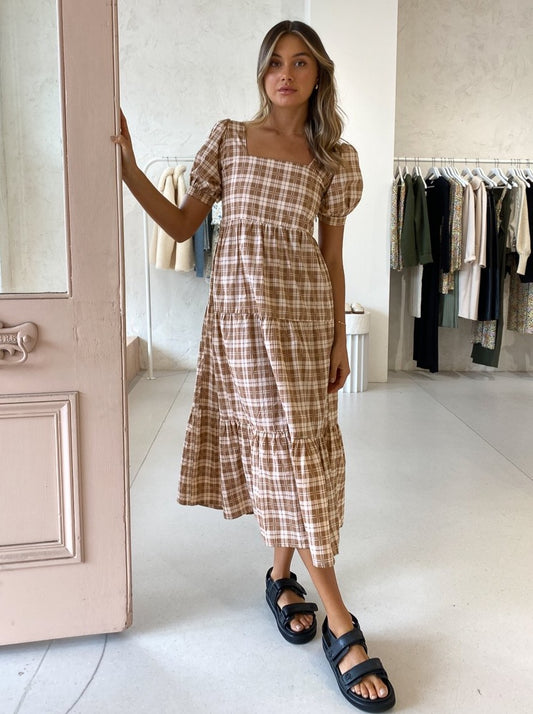 The Aylah Midi Dress in Lori Check Print from Faithfull The Brand is the versatile autumnal dress our Coco closets have been waiting for.