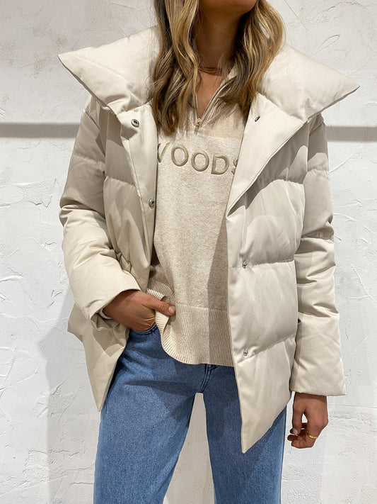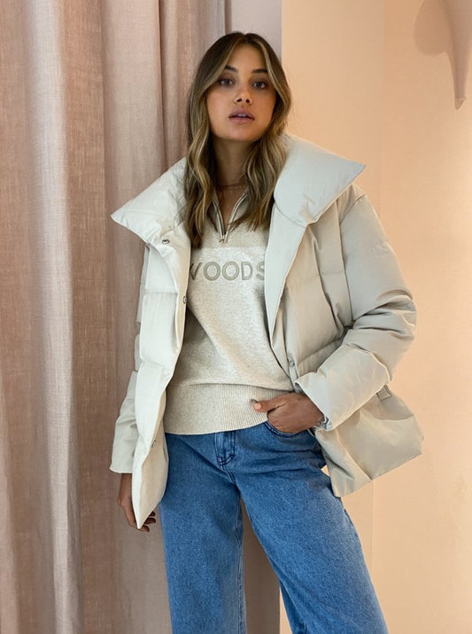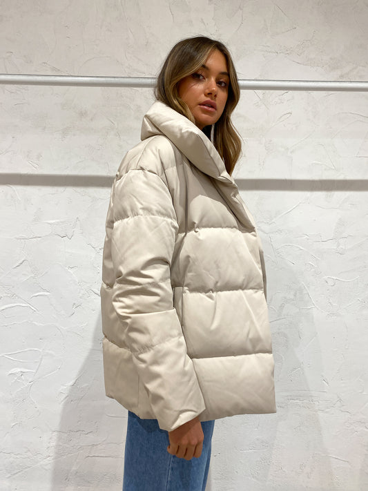 Elevate your luxe winter outerwear in the Astrid Puffer Jacket in Stone from Friends With Frank.
