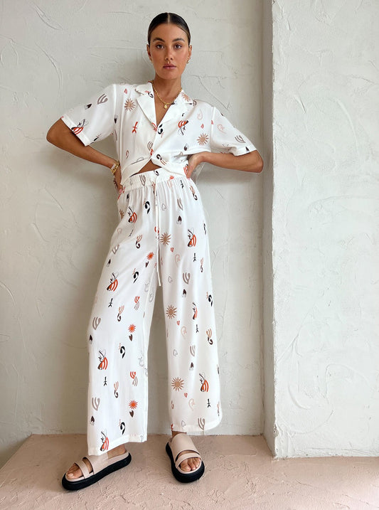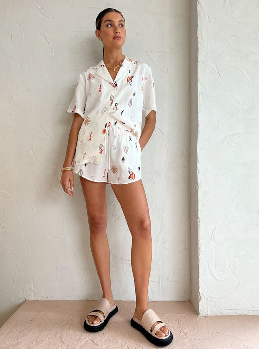 Brunch dates into office days, complete the ensemble with the matching Noa Short or Isla Pant in Hepworth Print, and accessorise with the Alias Mae Clara Slide in Cream, the Reliquia Telde Earrings and matching Telde Necklace in Gold and the Porter Baby Link Bracelet in Gold