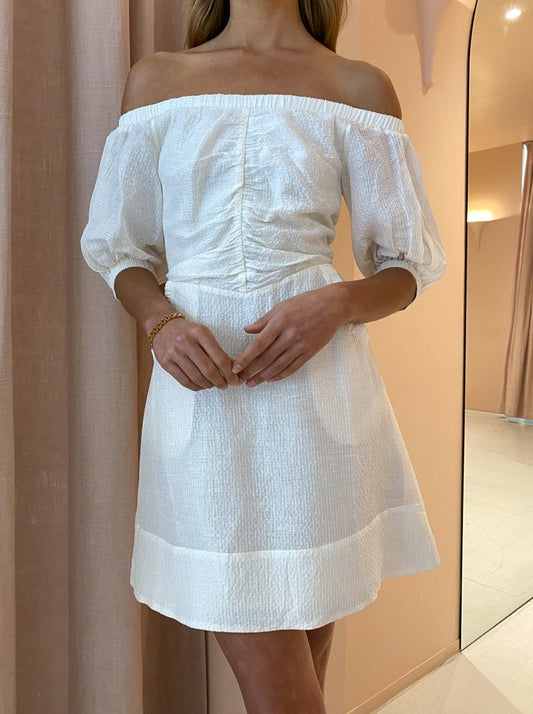 Crafted in a silk blend fabrication and cut in a mini length, the Dakota entails an elasticated off the shoulder neckline to accentuate the décolletage which falls into complimenting puff sleeves for that feminine touch. Designed for comfort and to be worn with ease, this mini dress will effortlessly elevate your everyday dressing.