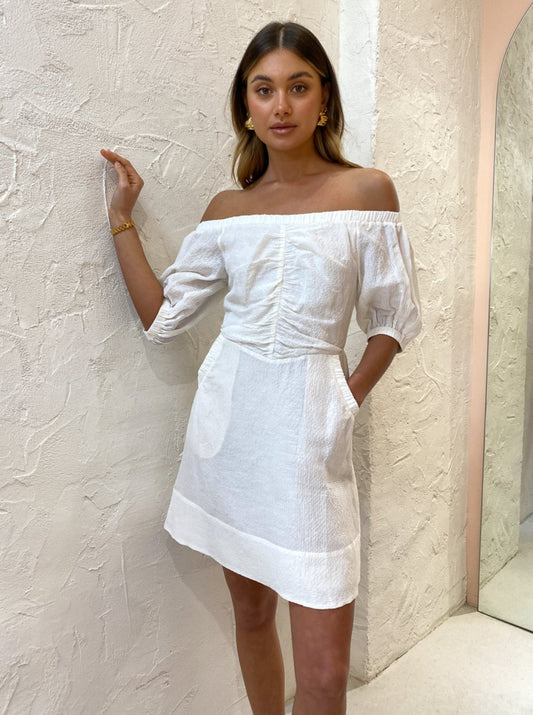 Coco girls love the functionality and versatility of the Dakota. Featuring pockets at the hips and minimalistic ruching detail through the centre bust, this mini can be dressed up or down and will be worn on rotation for seasons to come.