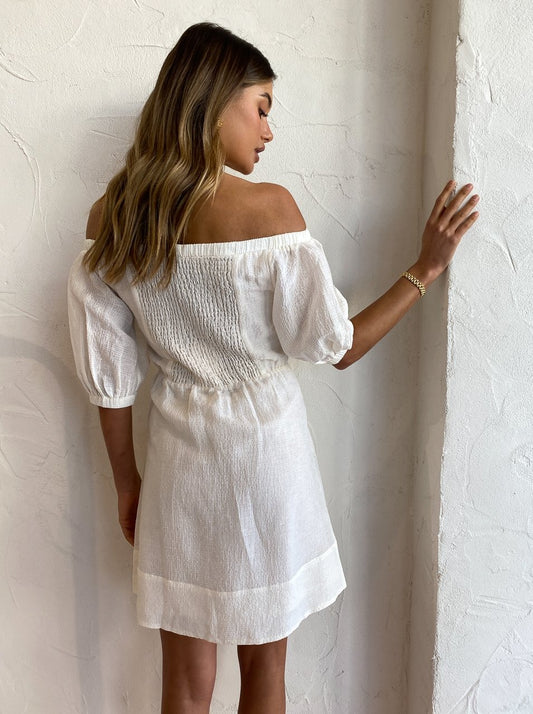 The Dakota Short Dress in Ivory by GINIA is the classic and versatile piece every girl needs in their Coco closet.