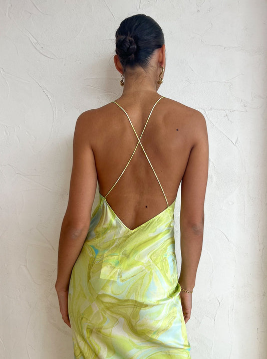 Ginia Gaia Maxi Dress in Lime Swirl Print