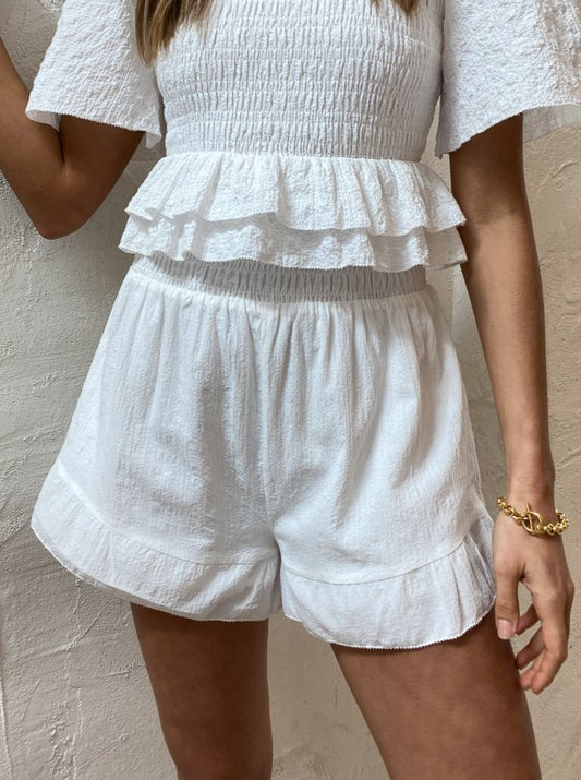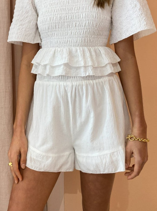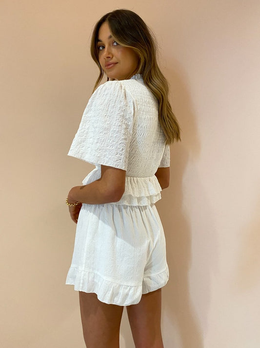 Soak up your sun drenched Summer days in the sweet as can be Agnes Shortie in White by Hansen & Gretel.