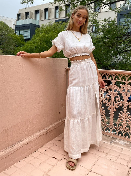 The Hansen & Gretel Josie Skirt in Ivory is a classic Coco staple.
