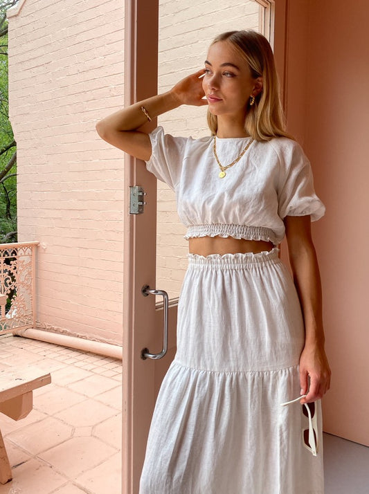 Coco Styling Tip: For a chic matching co-ord, style with the Hansen & Gretel Josie Skirt in Ivory.