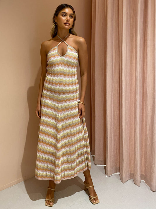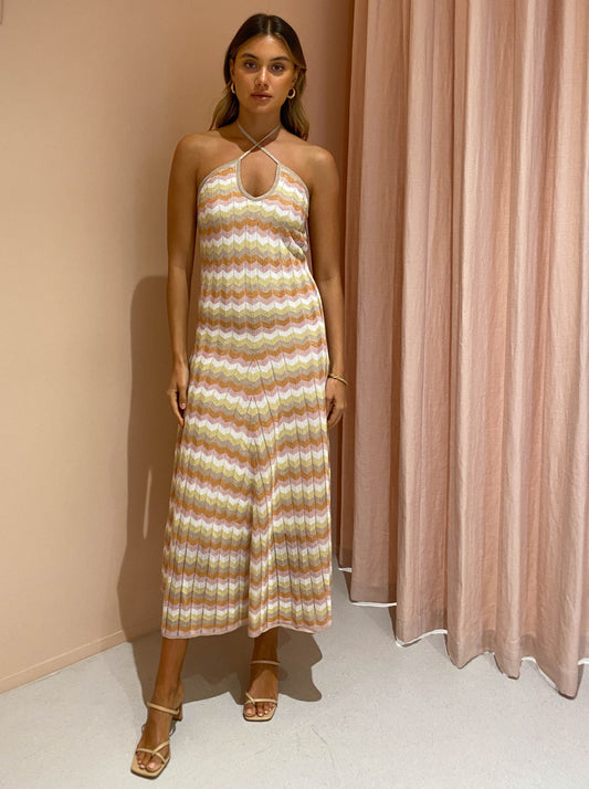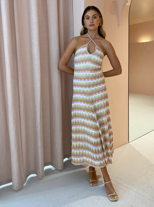 We are loving the 70's inspired Pandora Dress in Sunset Ripple from Hansen & Gretel.