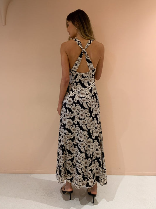 Adored for its romantic floral print and unexpected cross over twist detail at the back, this midi dress will see you through romantic dinner dates, birthday celebrations and twilight cocktails.
