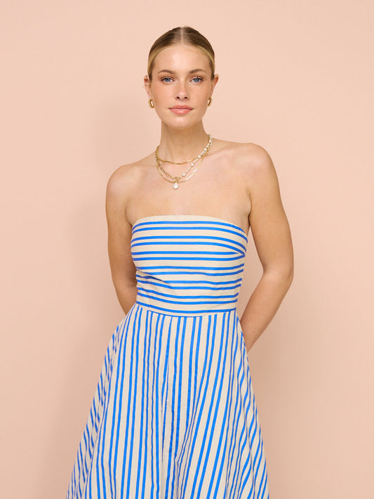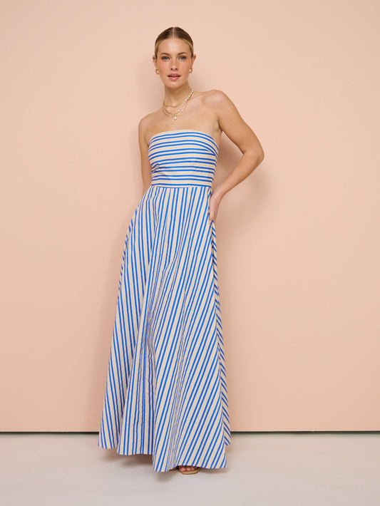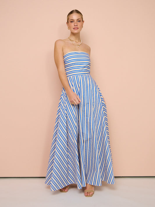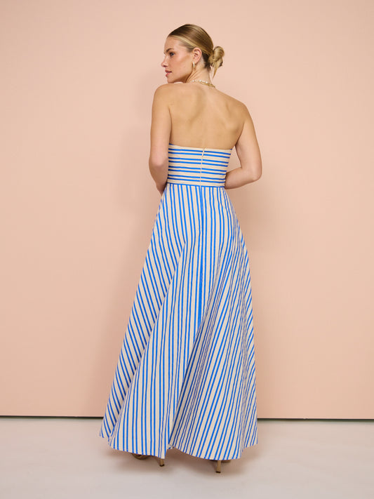 Showcasing a timeless strapless design, a structured bodice, and a full-length skirt, this beautiful dress is perfect for special occasions or weekend wear.