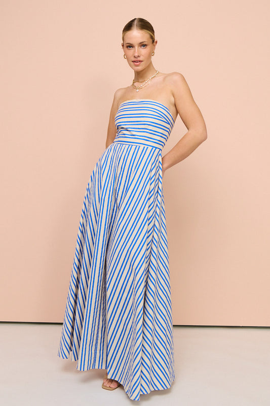 Make an elegant and sophisticated statement in the Hazel Dress in Sapphire/Antique from Aston Studio.